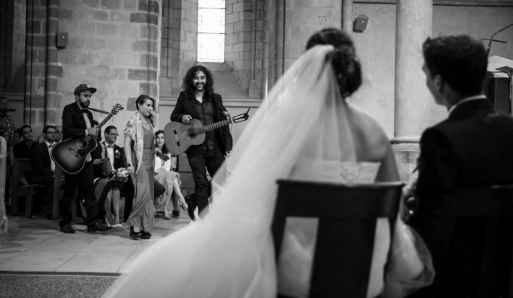 Cérémonie : Deux musiciens (2 Voix + 2 Guitares)offrent une prestation entièrement acoustique pour l’entrée de la Mariée dans l’église sur une chanson définie à l’avance. Ce moment solennel restera à jamais gravé dans la mémoire des mariés mais aussi dans celle de tous vos convives.